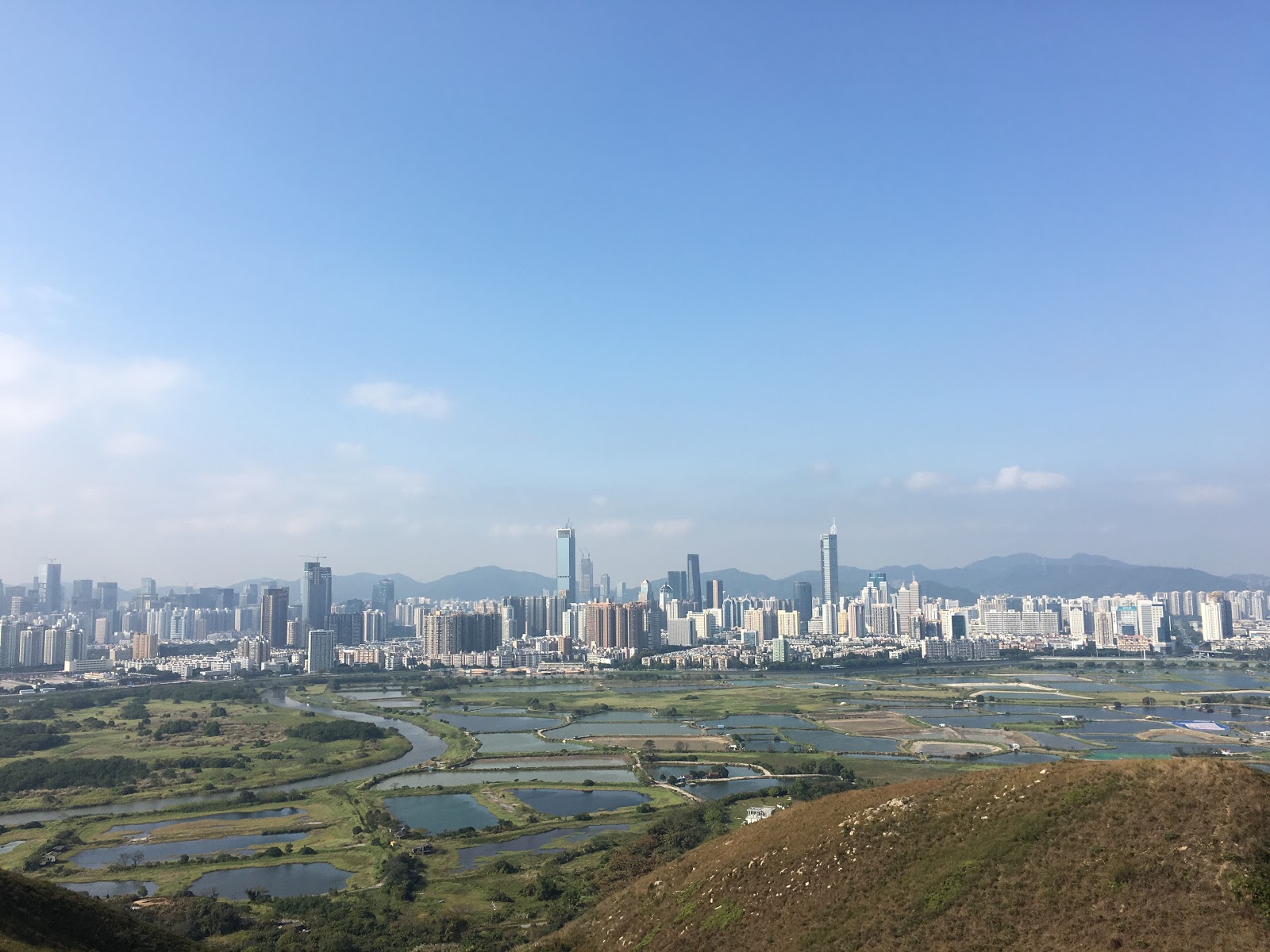 蛇嶺最吸引人的地方,就是可以一覽中港兩地的風光。有說深圳是一夜崛起之城,我同意。在十多年前,對岸的高樓仍是疏疏落落;今天對岸的石屎森林正以前所未見的速度向橫擴展,即使身在香港郊外,也能感受這股道來勢洶湧的氣焰。望著河岸大片綠意盎然的濕地,也不知道能夠保存到那年那夕。